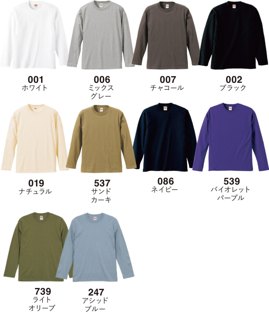 5010-01|5.6オンス ロングスリーブTシャツ【全10色】United Athle ¥962 ~ ¥1,303(税別) 商品について 程よい厚みでオールシーズン使える大定番のロングスリーブ ヘビーウェイトの代表格とも言える5.6オンス生地。 袖リブなし仕様。 素材について 綿100% 厚み:5.6オンス(標準的な厚み) ※ミックスグレー:綿90%,ポリエステル10% プリントオーダー・見積りへ この商品を・無地で購入する ▲ご注文ページが別ページで開きます。 お手数ですが品番・品名・カラー・数量など必要な情報を手入力にてご記入の上送信してください ▼こちらの商品はメーカーサイトで在庫が確認できます 在庫を確認する【メーカーサイト】 販売価格¥962(税別) 数量 在庫 : 在庫有り 販売価格¥1,144(税別) 数量 在庫 : 在庫有り 販売価格¥1,089(税別) 数量 在庫 : 在庫有り 販売価格¥1,303(税別) 数量 在庫 : 在庫有り 価格 カラー サイズ表 メーカー価格:1,750円〜2,370円 モリフロ特価(税別) ホワイト S〜XL 962円 XXL 1,144円 カラー S〜XL 1,089円 XXL 1,303円 カラー展開 全10色 サイズ展開 S〜XXL