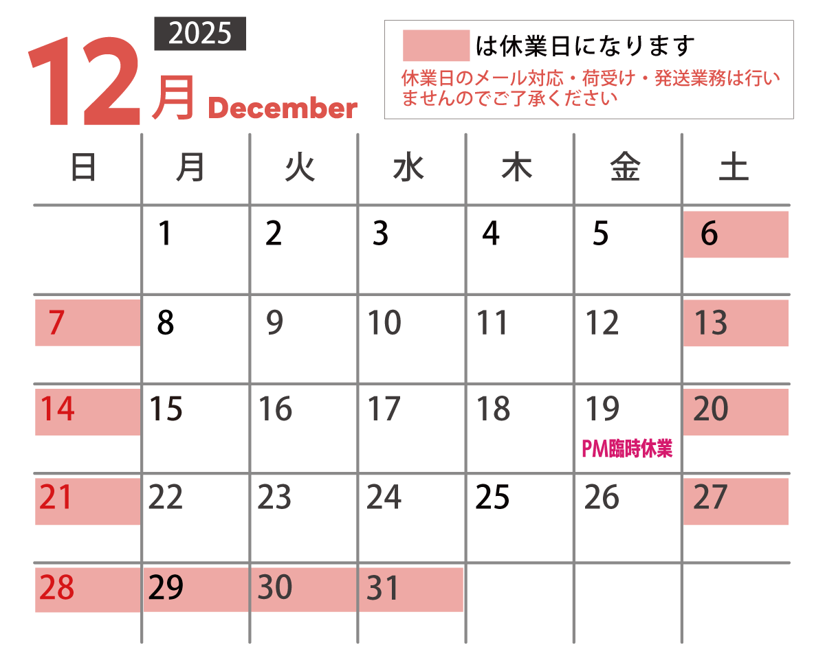※年末年始の休業日は2025年12月27日(土)〜2026年1月4日(日)です。