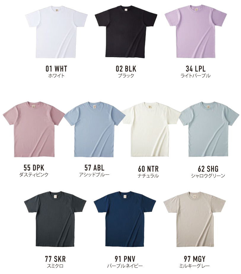 サイズ展開 | 110・130・150・S~XXL ※110・130・150cm展開がないカラー(全4色):34ライトパープル/55ダスティピンク/57アシッドブルー/62シャロウグリーン ※XXLは全カラー対応しています |